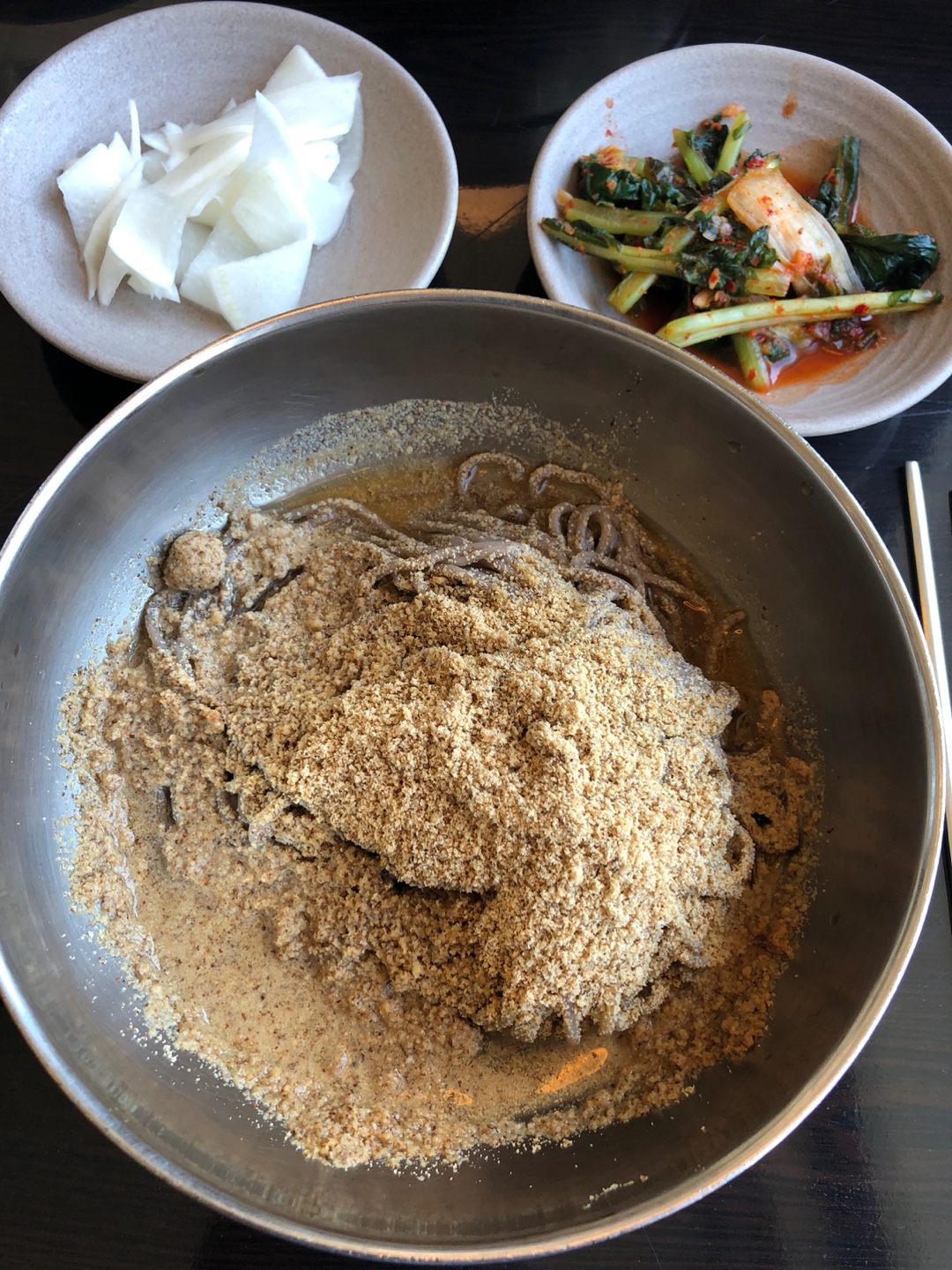 이보다 고소한 막국수가 있을까요!!! (포스팅하는 와중에 침 고이네요,,, 후루룩)