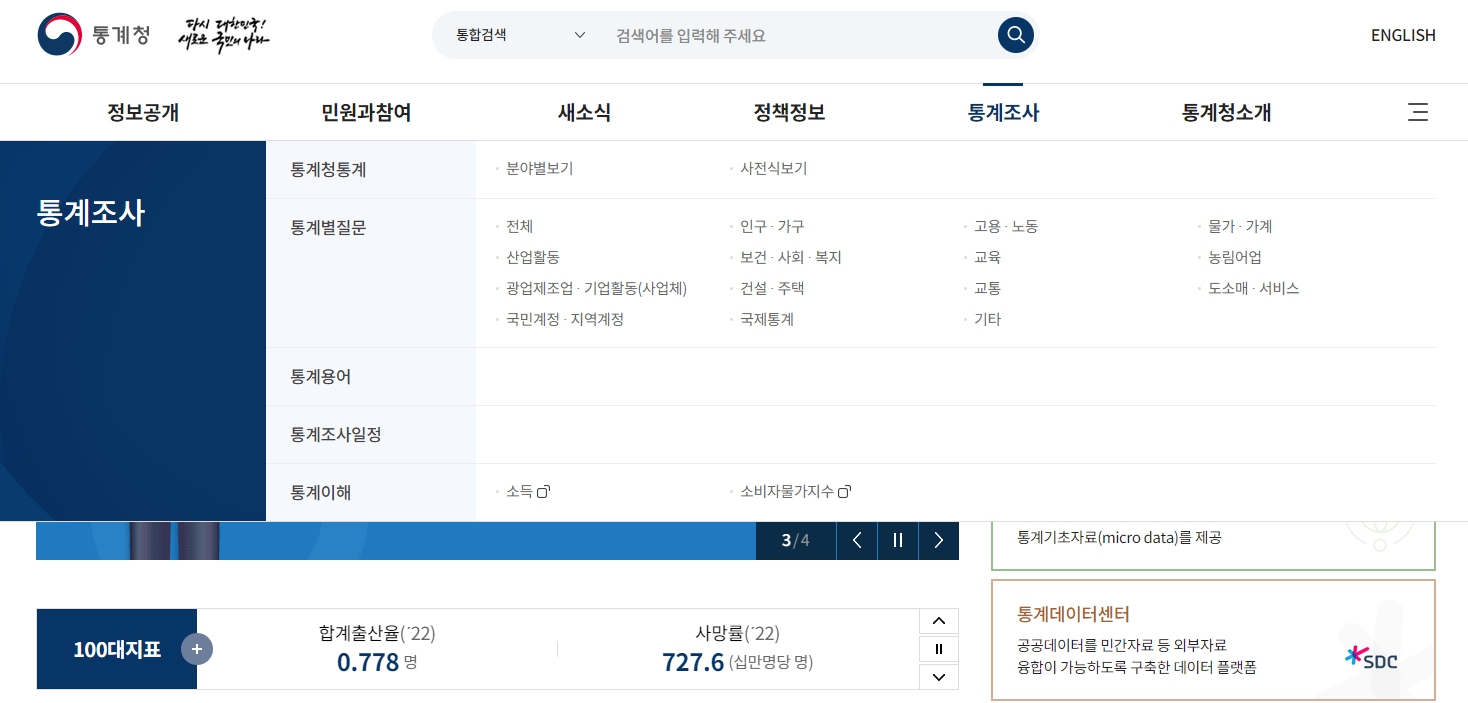 통계청에서 제시하는 자료는 매년 정해진 기간의 통계자료를 보여주고 있습니다.